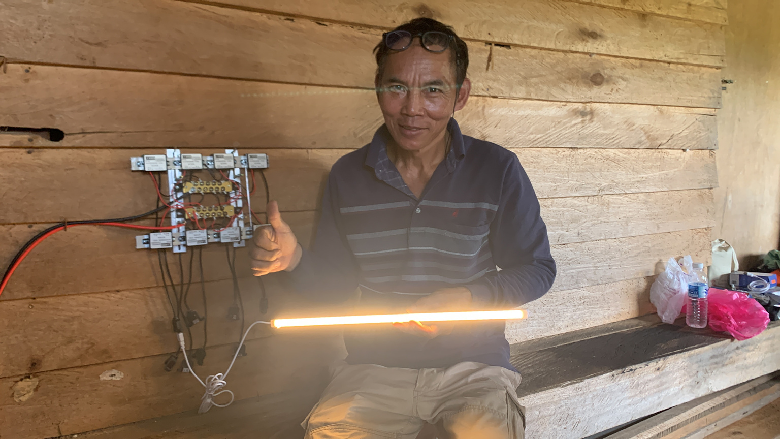這個村莊不大,只有12戶人家,我們在這裡安裝了兩片太陽能板及三個充電模組,也提供了燈管以及行動充電器。