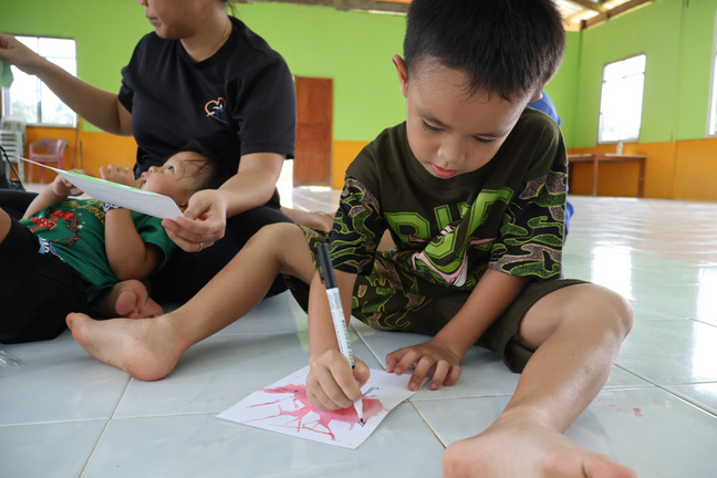 所以我們快速的打包好行李,用最後的時間陪孩子玩,Angnes和Jason拿出他們趁我們到第二個部落時畫的畫送給我們,看著他們天真地笑,我不禁為我離開這裡後,就能每天洗熱水澡、吃上大魚大肉而愧疚。