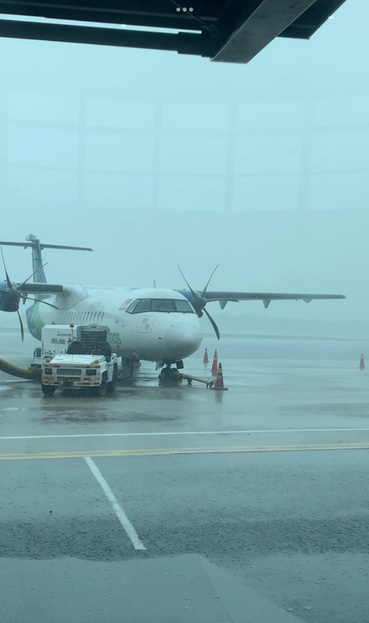 不幸的是,天空下起滂沱大雨,飛機延誤了近兩小時,