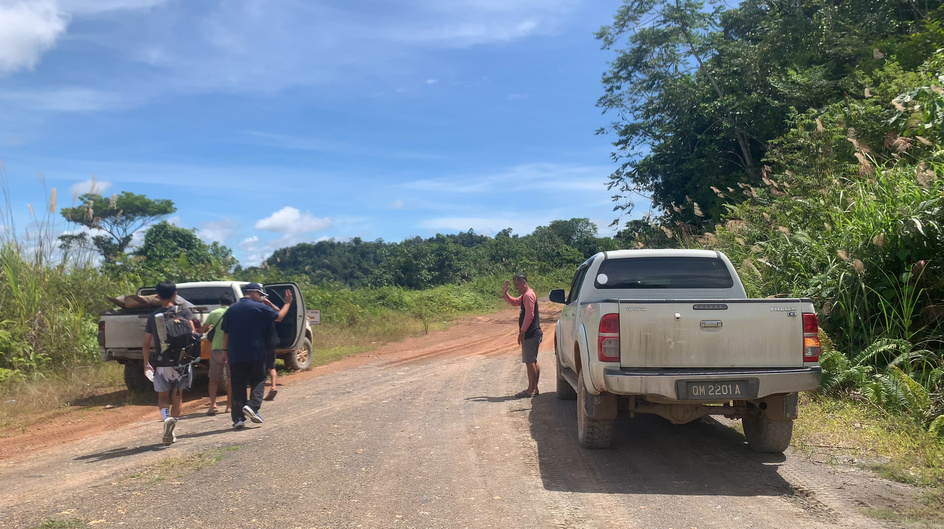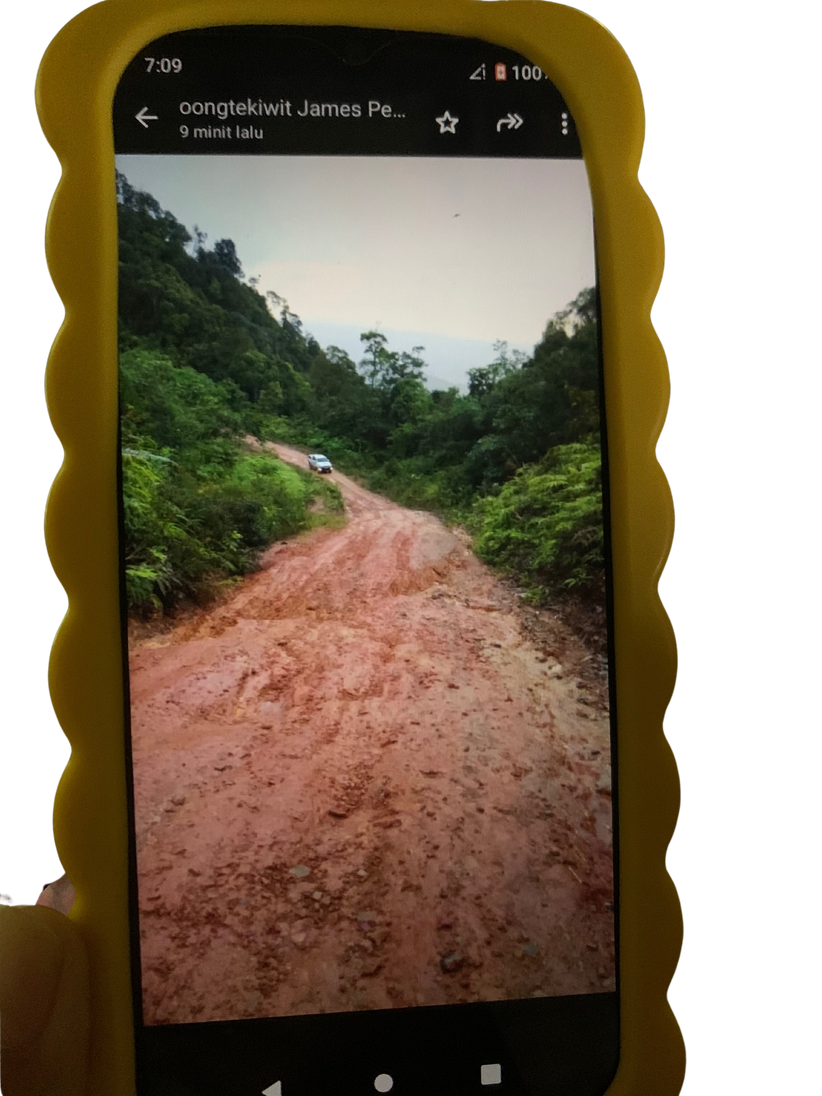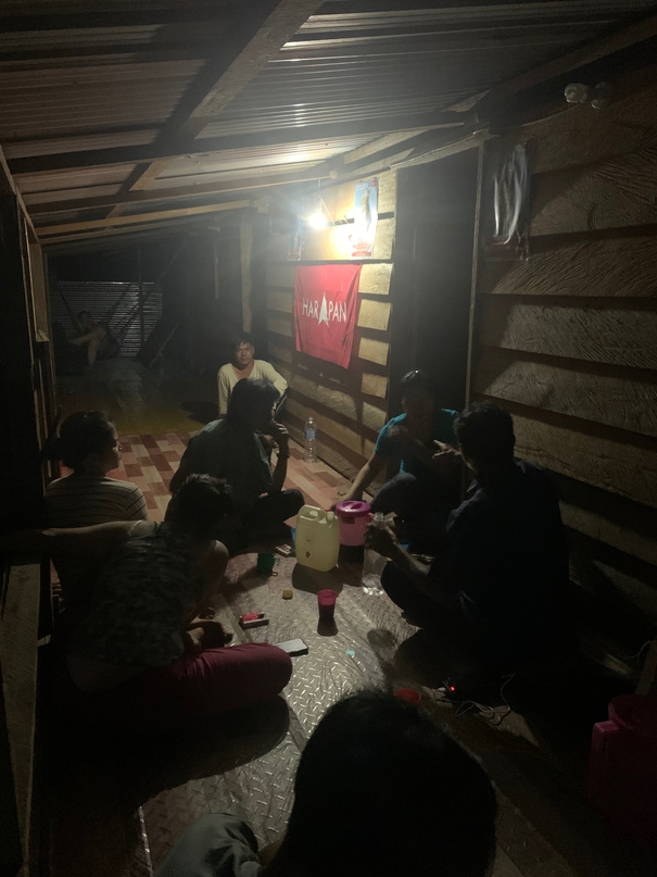 出發的前一晚,門外下著大雨,而James傳到頭目家的照片,讓大家都非常擔心。他們提前一晚從Miri(砂勞越的第二大城)開車到Long Iman,但連下了五天的雨,讓山路泥濘難以行駛,他們的車卡在路上,動彈不得,必須在半路過夜。