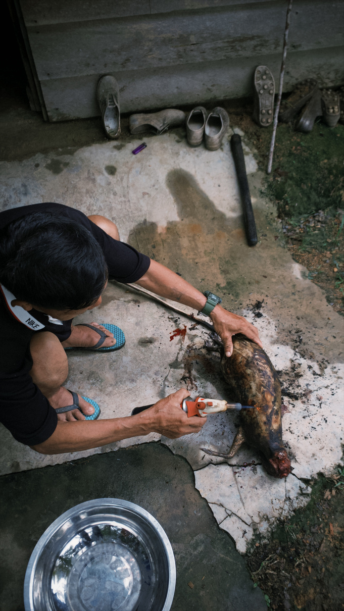 這些照片是頭目一大早獵到的鹿,處理過後變成我們午餐的過程。